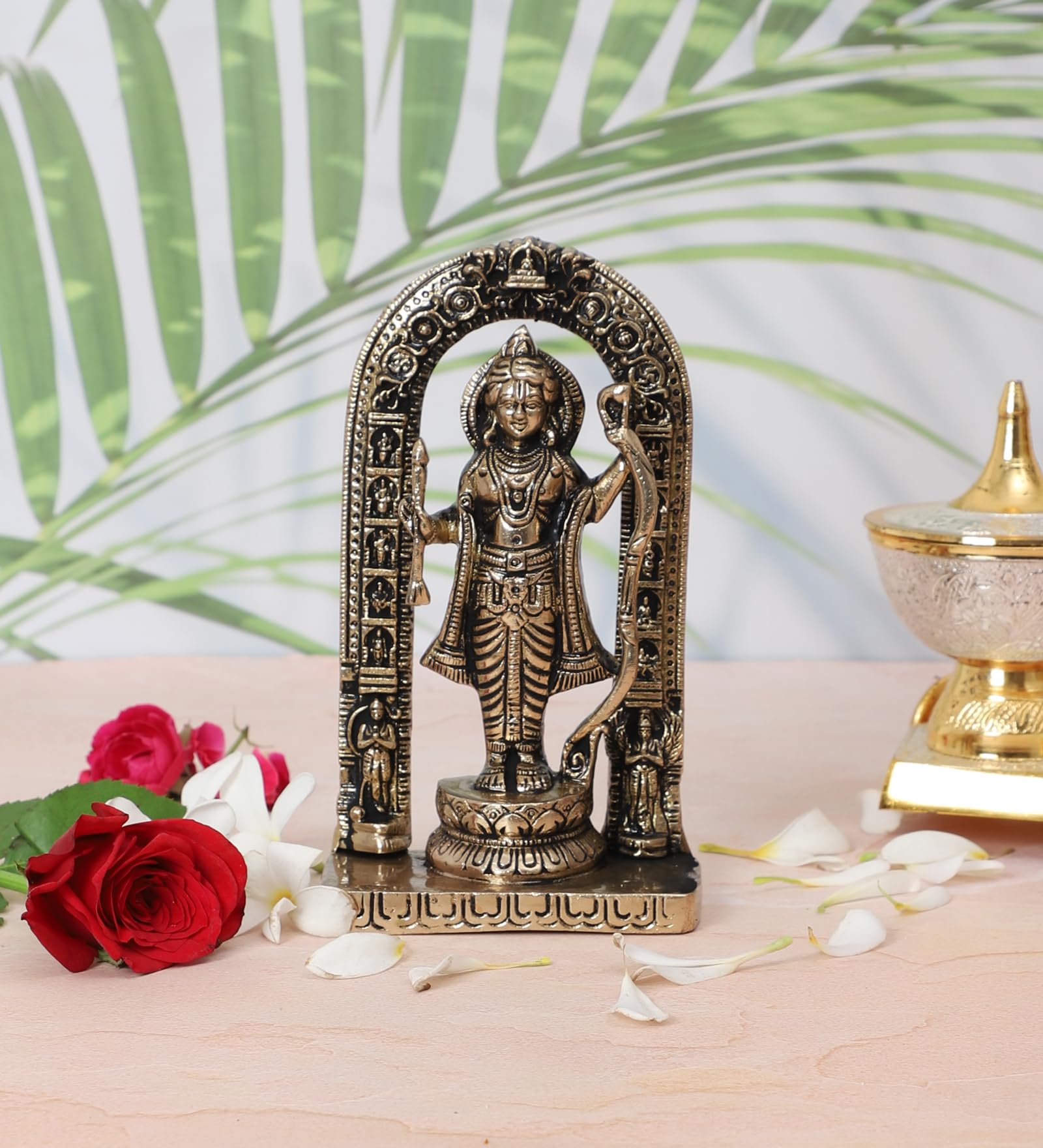 Presenting the exquisite Ram Lalla Brass Idol, a timeless piece that radiates divine charm and spiritual grace. Crafted with meticulous attention to detail, this idol captures the essence of Lord Ram's divine persona, making it a captivating addition to any sacred space or home altar. Made from high-quality brass, this idol showcases superior craftsmanship, reflecting the rich heritage and cultural significance of Indian religious art. The intricate detailing on Lord Ram's Frame showing the ten avatars of Lord Vishnu. This idol is perfectly sized to fit on a puja mandir or any sacred shrine. Whether you're seeking inspiration for daily prayers or looking to enhance the ambiance of your meditation room, the Ram Lalla Brass Idol serves as a symbol of strength, righteousness, and unwavering devotion. Elevate your spiritual practice and invite the blessings of Lord Ram into your life with this exquisite brass idol. Whether displayed as a centerpiece or gifted to a loved one, it's sure to inspire faith and serenity in all who behold its beauty.