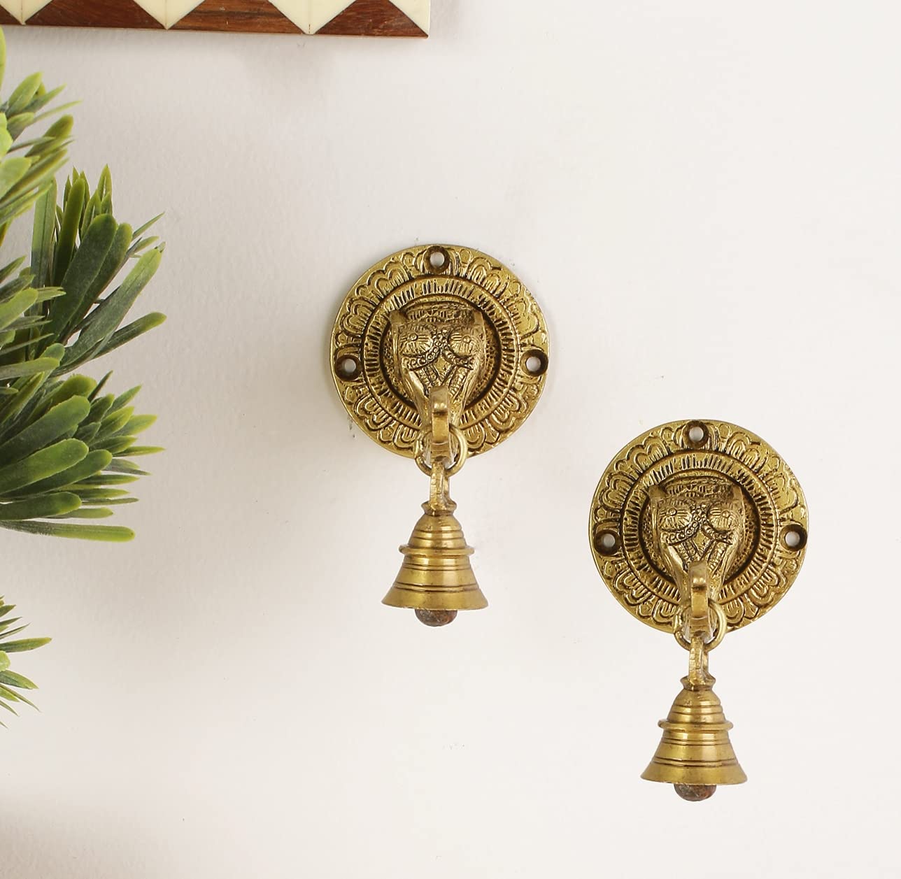 This elaborately designed Manglam Handicrafts Elephant Face Wall & Door Decorative Bell with intricate detailing makes it appear straight out of the period of the medieval era. Made from high-quality brass, this bell can be a decorative at the main door or gate of your house. Brass has several characteristics that make it an ideal choice for art and craft. Designed smartly and skillfully to suit any kind of door, this wall & door bell is a perfect gifting option for any type of occasion, be it a wedding, house-warming party, or traditional festivals.