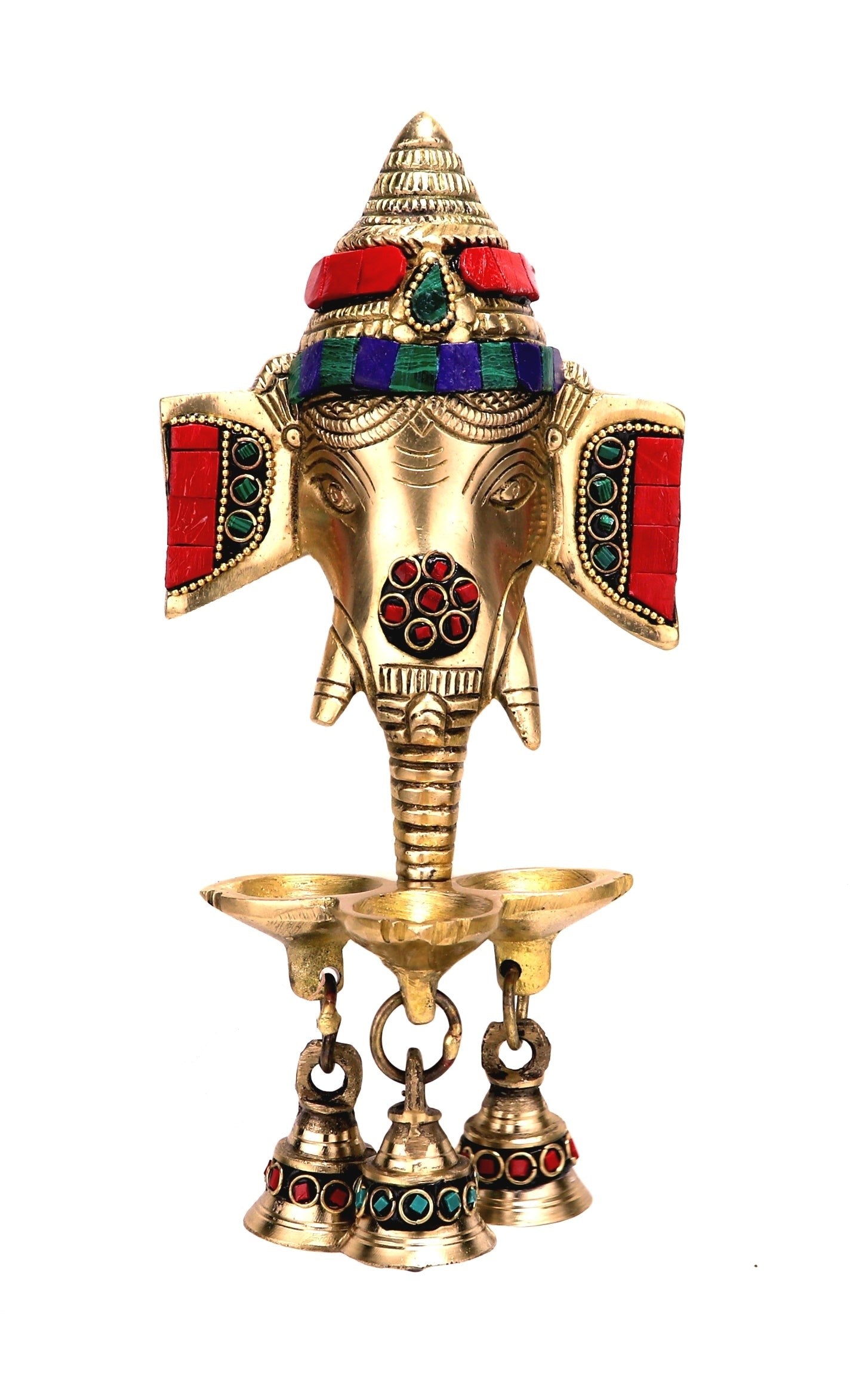Gemstone Work Brass Ganesha Wall Hanging Diya
