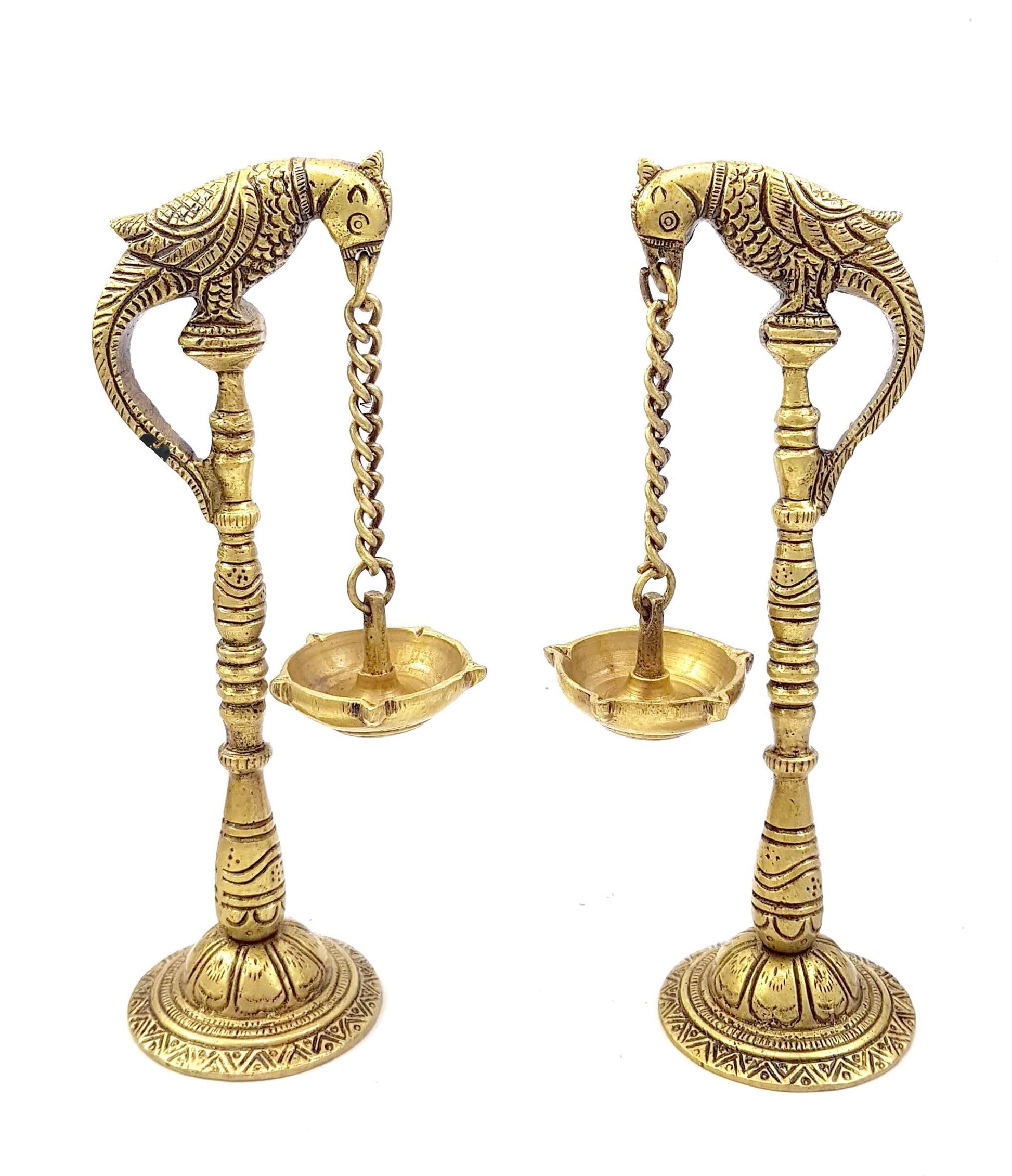 Parrot Design Brass Hanging Diya Pair (Pack of 2)